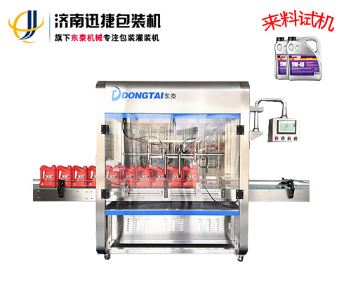 全自動潤滑油灌裝主機采用流量計的灌裝方式,一對一系統設計,4頭灌裝機采用4套供料系統單灌裝主機采用流量計的灌裝方式