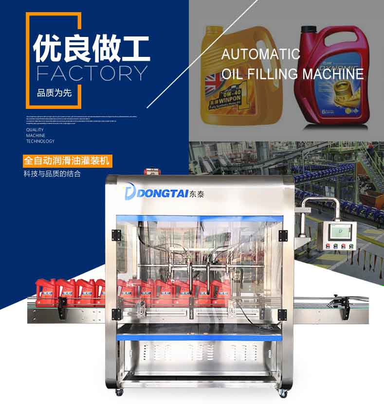 5.灌裝頭為國家專利產品,專利獲得者為東泰公司,獨有的雙重防滴漏,灌裝下料口設計精細,行程短,同時也提高了整條線的灌裝速度和灌裝精度,保證在正常灌裝過程中一滴油都不會滲漏