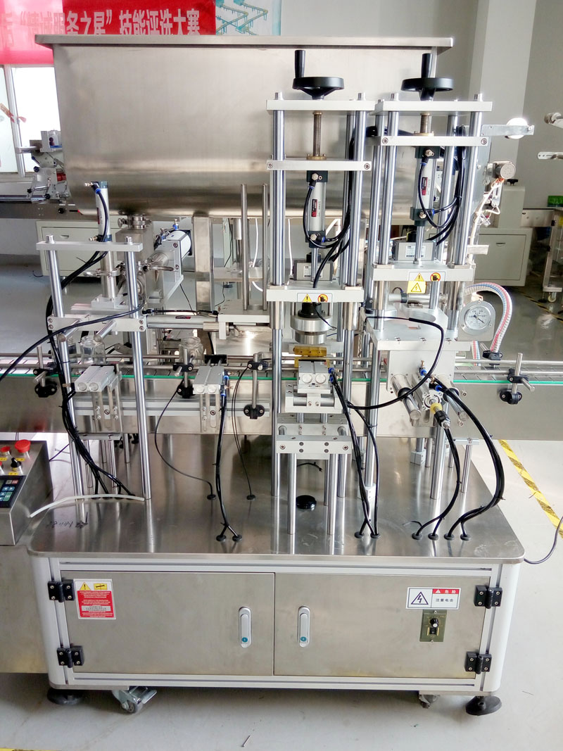 醬類醬料醬體灌裝真空旋蓋機(jī)采用活塞式伺服驅(qū)動(dòng)原理,適用于調(diào)味品中的液體,濃湯或者帶顆粒并且濃度較大的辣椒醬、豆瓣醬、花生醬、芝麻醬、果醬、牛油火鍋底料、紅油火鍋底料等較為粘稠醬類的灌裝,自動(dòng)化程度高,機(jī)器能完成自動(dòng)灌裝、自動(dòng)取蓋上蓋,自動(dòng)真空封蓋封口。